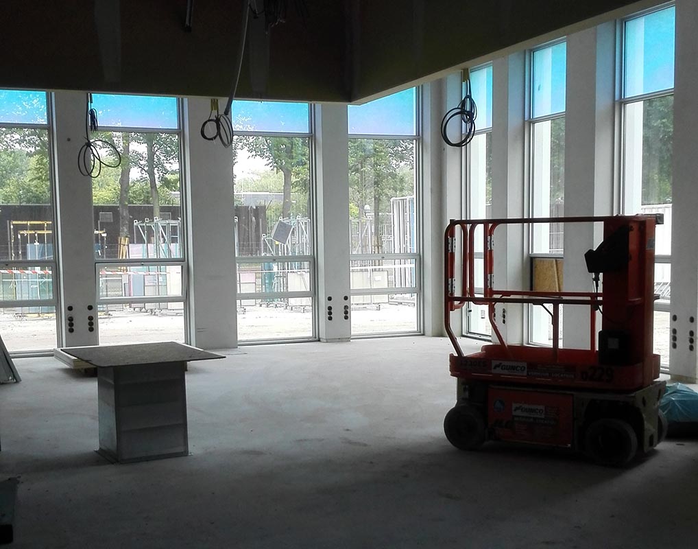 De trillingsvrije vloeren zijn uitgevoerd met speciale heipalen, welke schuin de grond in zijn geheid. Vervolgens is hier een speciale rubberlaag overheen aangebracht. Verder wordt het grondwater automatisch weggepompt, de fundering is daarom omhuld met folie.